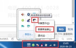1)在电脑右下角,找到【T1或管家婆套接字服务器】,右键点击图标,在弹出的菜单中点击【数据库连接】