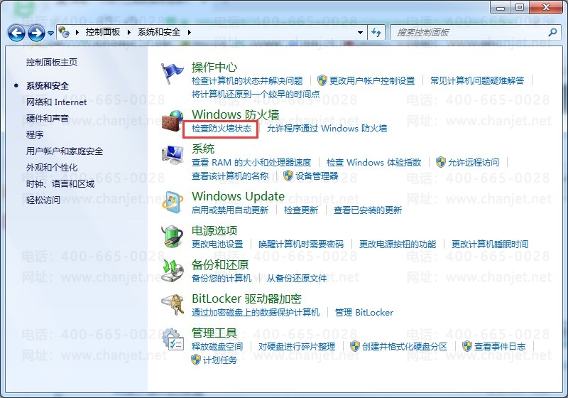 (3)在打开的【系统和安全】页面中,点击【检查防火墙状态】