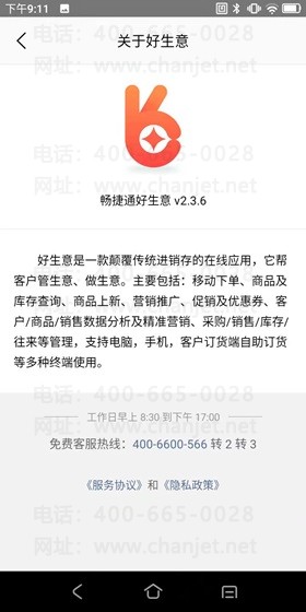 1、查看好生意版本号,首先打开【好生意】----> 进入首页,点击左上角按钮 ----> 显示侧滑栏,选择【关于好生意】打开即可查看好生意相关的版本号及介绍(示例中所查到好生意的版本号是V2.3.6)
