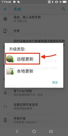 3.到系统里面选择系统升级-->远程更新
