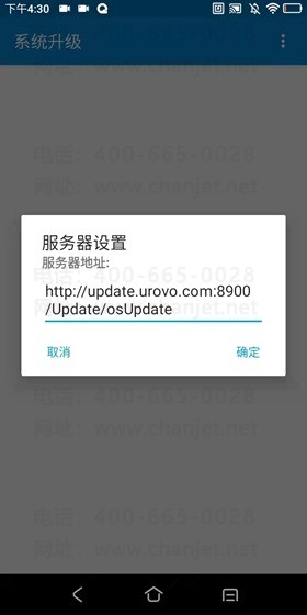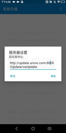 如果没有搜索到更新,可以在右上角设置里,将服务器地址'http://update.urovo.com:8000/Update/osUpdate'的端口号设置为8900,设置完后为‘http://update.urovo.com:8900/Update/osUpdate’并重新刷新