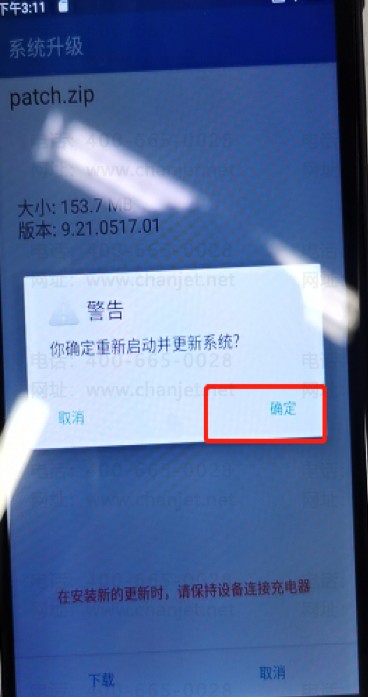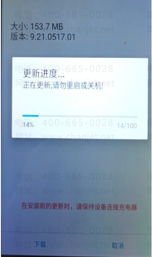 5. 点下载后会进入到下载更新包界面,下载完成后会提示需要重新启动,点确定(在连接wifi的情况下,下载更新包需要5-10分钟左右,,在下载途中请务必不要操作机器,避免下载不成功,导致需要重新下载)