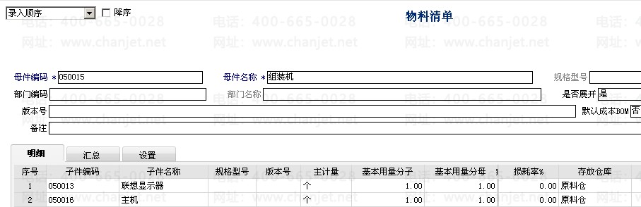 组装台式机,子件为显示器和主机,其中显示器分联想和三星两个品牌,两种显示器车间都可以随机领用。