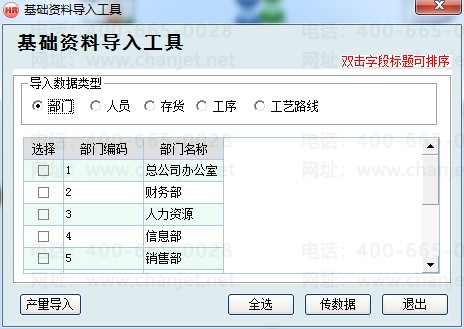 4、从T6软件中将部门、人员、存货、工序、工艺路线等基础资料导入到T6HR软件中;