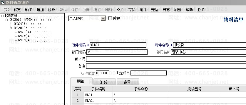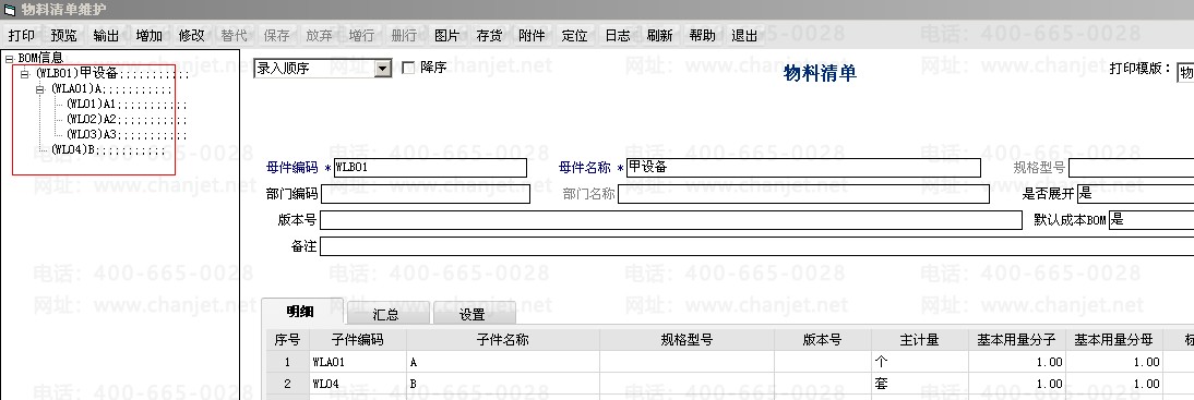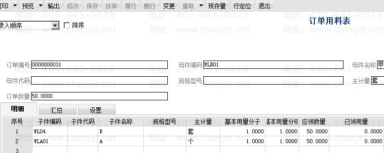 2. 对物料清单的设置