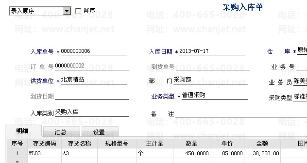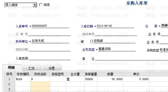 1. 对采购进行入库
