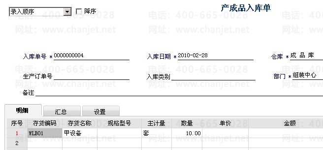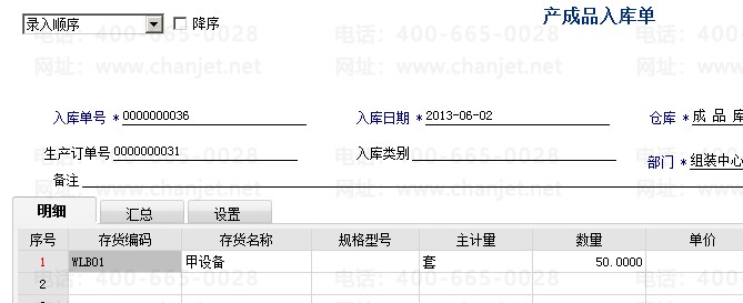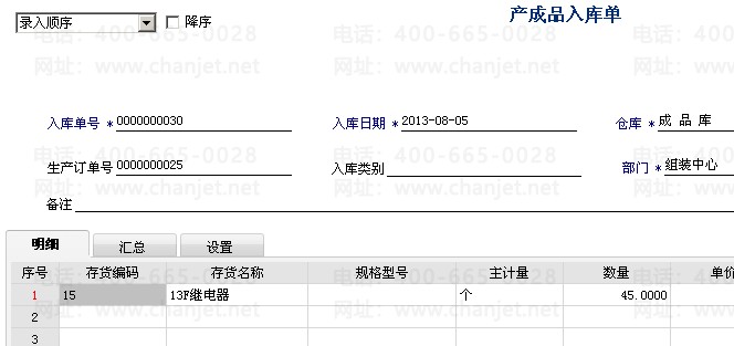 1. 库存管理模块对产成品进行入库单进行审核
