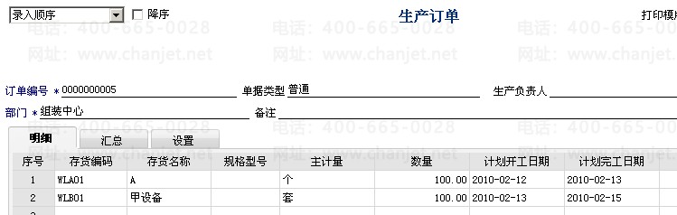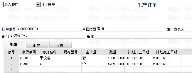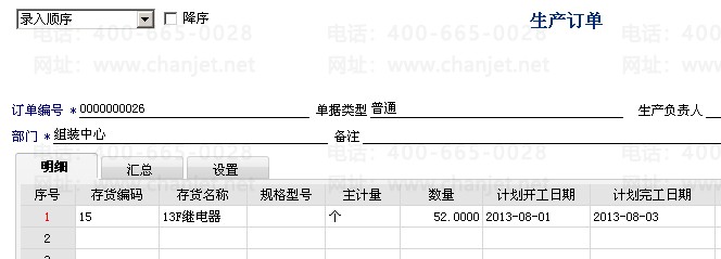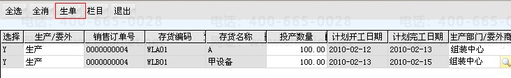 1. 下达生产订单