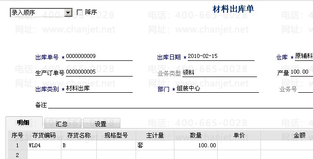 1. 材料出库单根据生产订单生成