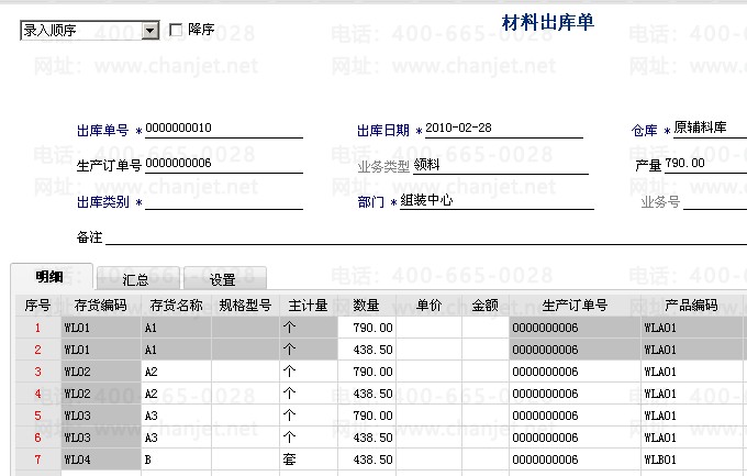 1. 对材料进行出库,根据生产订单生成,并对单据进行审核。