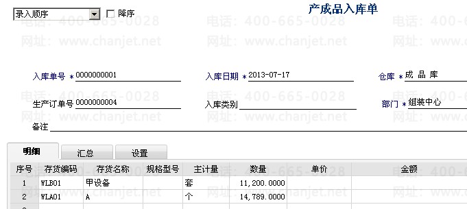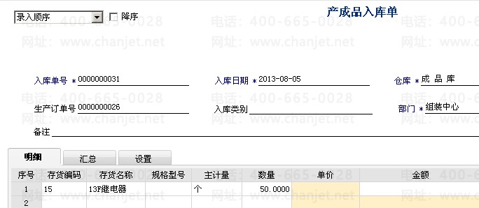 12、对产成品进行入库,根据生产订单生成,并对单据进行审核