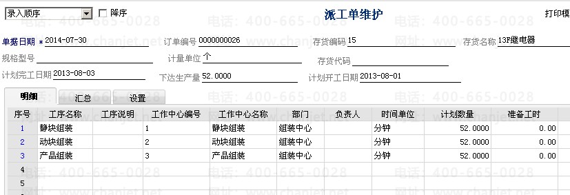 1. 设置生产参数工作中心