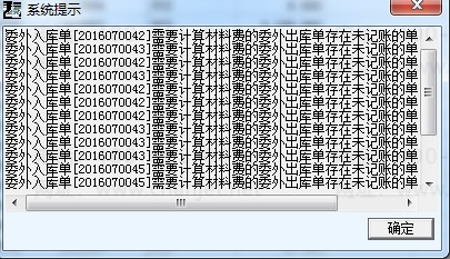 查询委外入库单对应的所有的材料出库单,都是记账状态。于是检查 7 月份以后的委外材料出库单,发现 8 月份有的材料出库单,没有记账,但已审核,可能是这部分单据导致的提示。