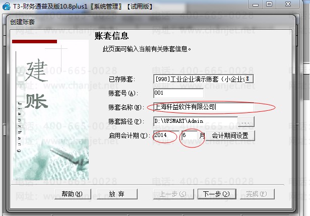 3. 输入公司名称——输入帐套启用的日期——下一步