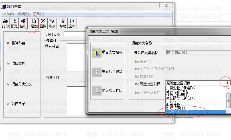 2.增加项目目录(主要是为了出现金流量表用的,如果不要现金流量表,可以不增加)