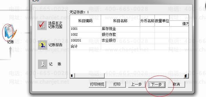 10.凭证记账——连续点下一步