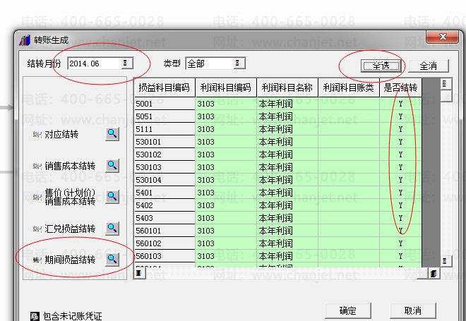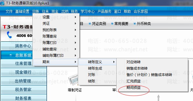 11.凭证都记账完毕后进行月末转账——定义损益结转——月末结转