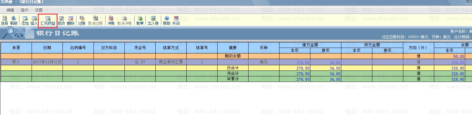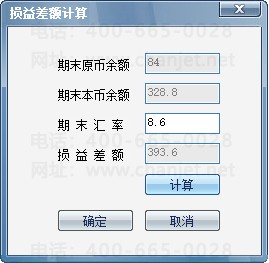 期末,点击“汇兑损益”,自动显示本账户期末的外币和本币金额,录入期末调整汇率后,点击“计算”,自动计算汇兑损益的差额;