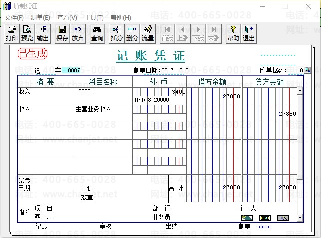 (3)日记账制单