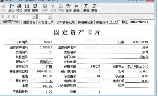 第一步:先增加一张资产卡片