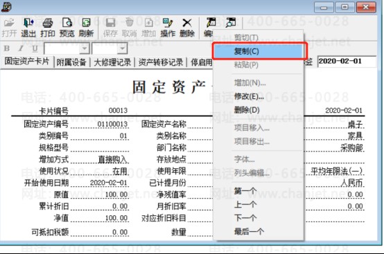 可以录入数量,要去卡片项目里增加,然后去卡片样式里将数量移到卡片上去,但是不建议这样,因为这样做的话做资产减少的话那就是减少全部的,可以采用固定资产卡片复制的方法,先增加一张卡片,再复制9张,下面是怎么复制固定资产卡片的步骤:
