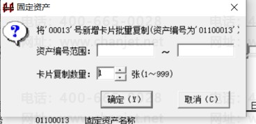 第二步:增加完一张固定资产卡片后退出,进入卡片管理,选中这张卡片双击,进入这张卡片里,点击编辑,再点击复制,然后弹出一个对话框,让你填写复制几张卡片和资产编码范围,比如这张固定资产卡片要复制10张,因为之前做了一张编码为01100013,只需要复制9张,就填固定资产编码为01100014~01100022,卡片复制数量为9