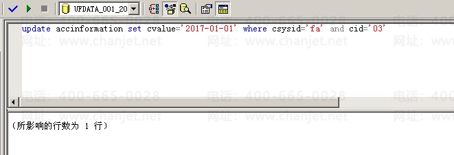 update accinformation set cvalue='2017-01-01' where csysid='fa' and cid='03'