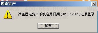 登录 2017 账套固定资产模块提示:请在固定资产系统启用日期(2016-12-01)之后登录