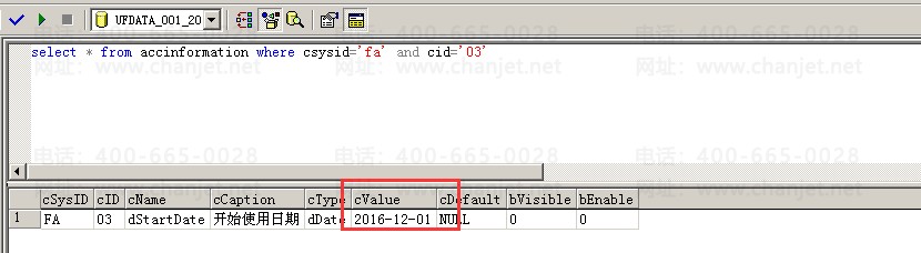 1.首先备份数据,对 2017 年执行以下语句:查询 2017 年度账中固定资产的“开始使用日期”。Select * from accinformation where csysid='fa' and cid='03'