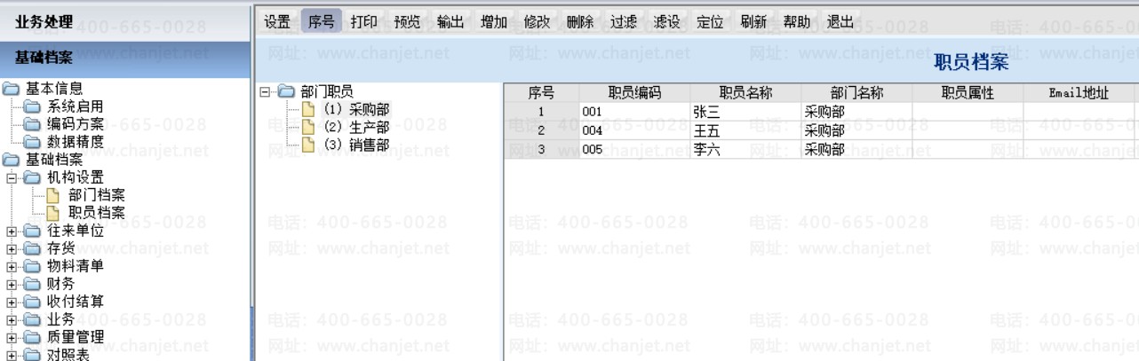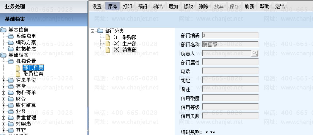 业务员在基础档案→机构设置→职员档案里面添加的,不过添加职员档案的时候要先点好是属于那个部门的