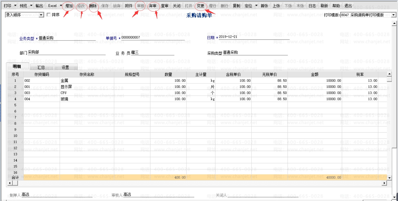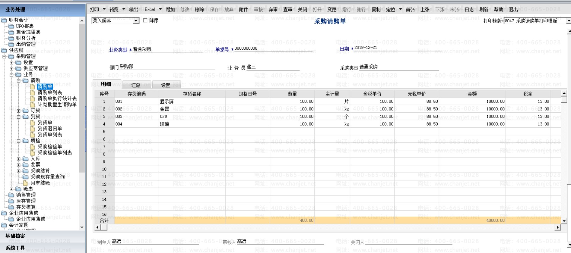 请购单可以详细直观的表现出请购订单的具体信息以及制单人是谁