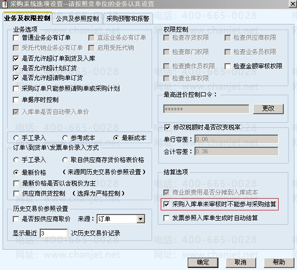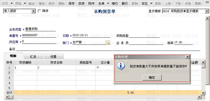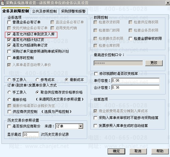 1、不勾选此选项时,参照采购订单生成的到货单或采购入库单量超出订单量时会提示