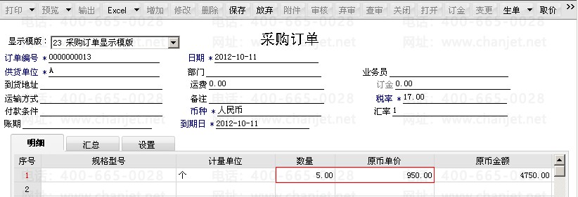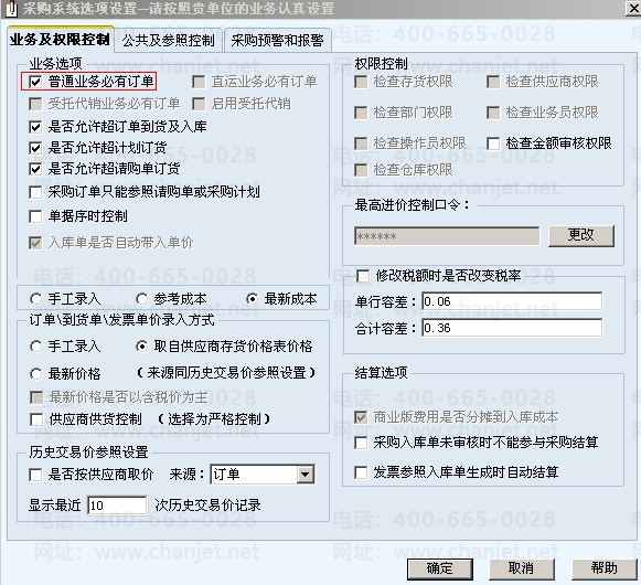下面的案例中会对T6采购管理中常用的选项进行详解,并配有业务截图,便于理解。