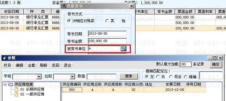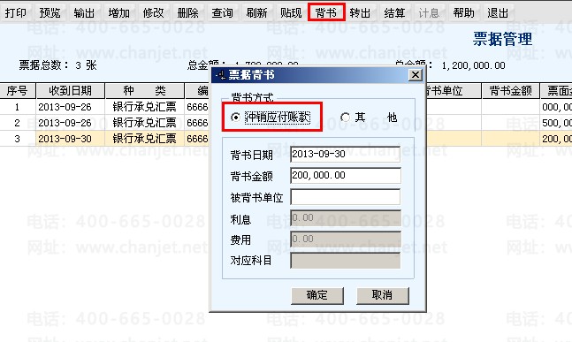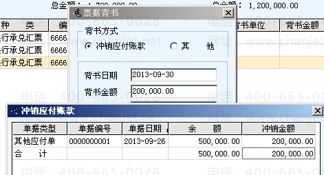 2.转给供应商,选择背书给供应商,背书时候,选择冲减应付账款,此时会出现“退票”的按钮