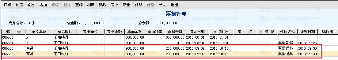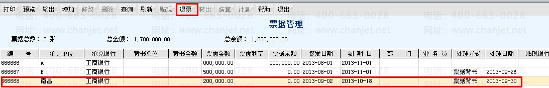 3. 退回的票据,做退票处理。此时会多一条票据退回的记录