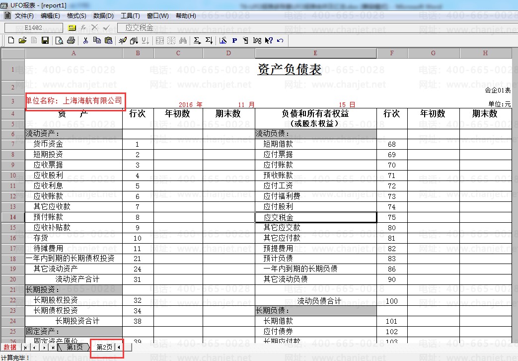 五、在【第2页】得到第二个账套的资产负债表: