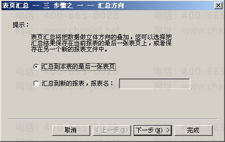 根据实际情况可以选择是汇总到本表的最后一张报表(在本表中自动新增一张页签,数据汇总至此)还是汇总到新的报表里;