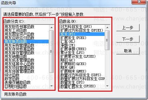 出现函数向导,左侧列示了函数分类。选择函数类别,在右侧选择函数名称,点击“下一步”