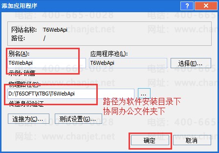 a、可以在软件安装目录下执行 C:\T6SOFT\XTBG\T6_WebApitoIIS.exe,此步骤前提是 iis 管理器已安装正常,T6_WebApitoIIS.exe 的功能是配置T6web 服务b、如果第一步没有效果,可以手工添加该程序,具体操作如下,选中网站的T6WebApi,右击选择“添加应用程序”: