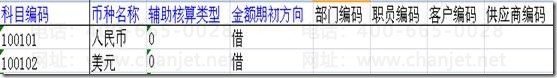 一、科目编码、币种名称、辅助核算类型、金额期初方向为必填项
