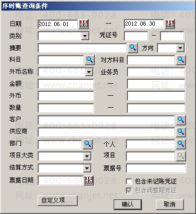 序时账直接就可按科目自定义项过滤