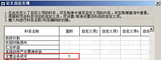 2. 设置会计科目,基础档案--财务--会计科目--点击定义,将科目设置自定义项,双击显示‘Y’即可。