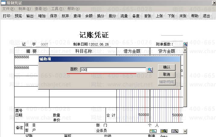 3. 填制凭证,选择科目后,填写辅助项--自定义项。