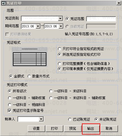 (1)在总账系统中,先将凭证“输出”,文件类型选择包含