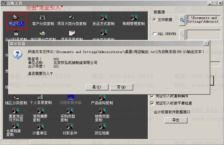 (4)进入到T6总账工具中,将“凭证输出.txt”这个文件引入到T6软件中去即可。