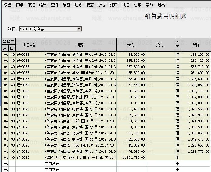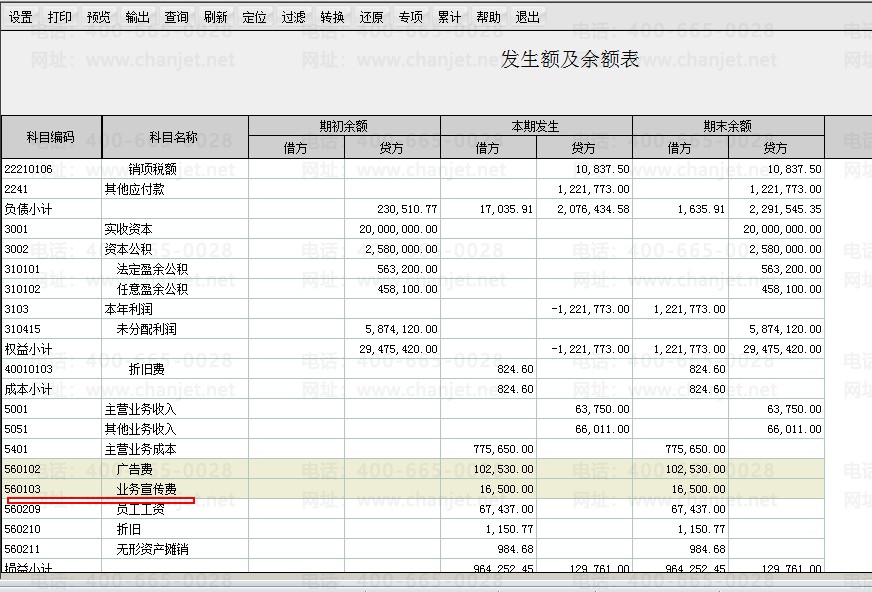 仔细看上面的明细账,本期借方是有发生,但是正负抵消了,相当于借方发生额合计是0,贷方发生额合计也是0,余额表中不显示借方、贷方发生额合计都为0的科目,这个是软件的限制。