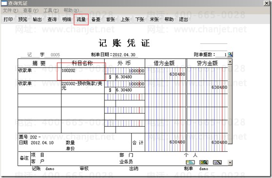 选中现金流量科目,并点击“流量”按钮,补录现金流量