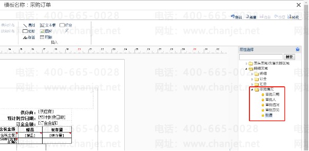 3、在右侧的明细区域中选择审批情况,选择需要的字段即可。