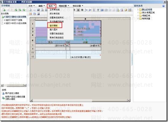 在弹出的模版设置的界面上,选中对应的打印模版,点击“格式”下的“套打模版”,点击之后自动切换成非套打模版。