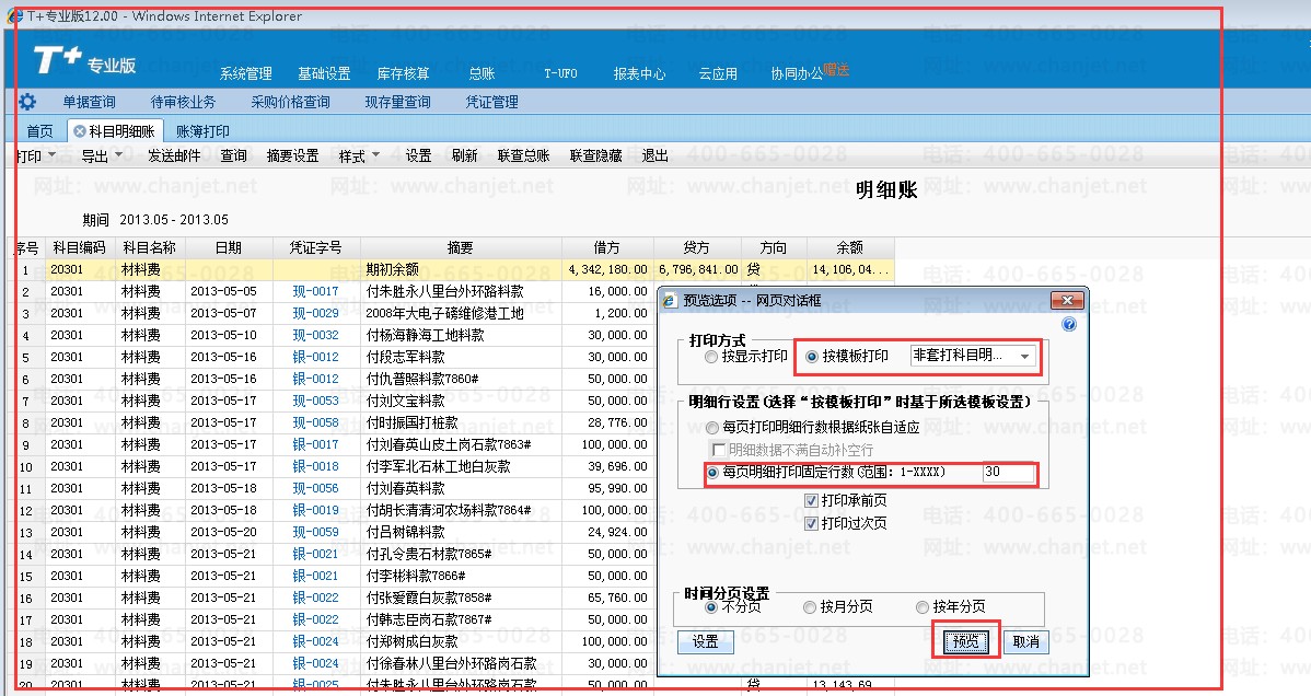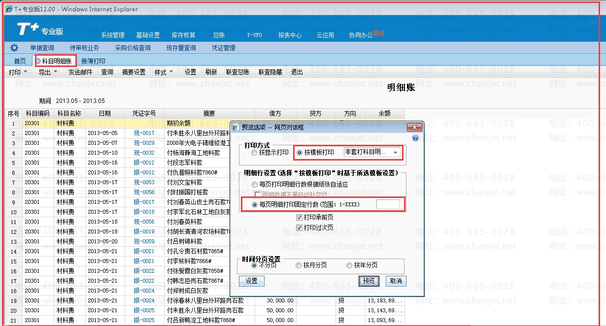 (明细账打印预览)